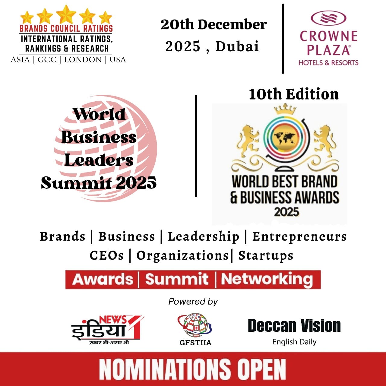 Council for Brand Business Promotions and Research & News 1 India is organizing World Best Brands and Business Awards 2025.